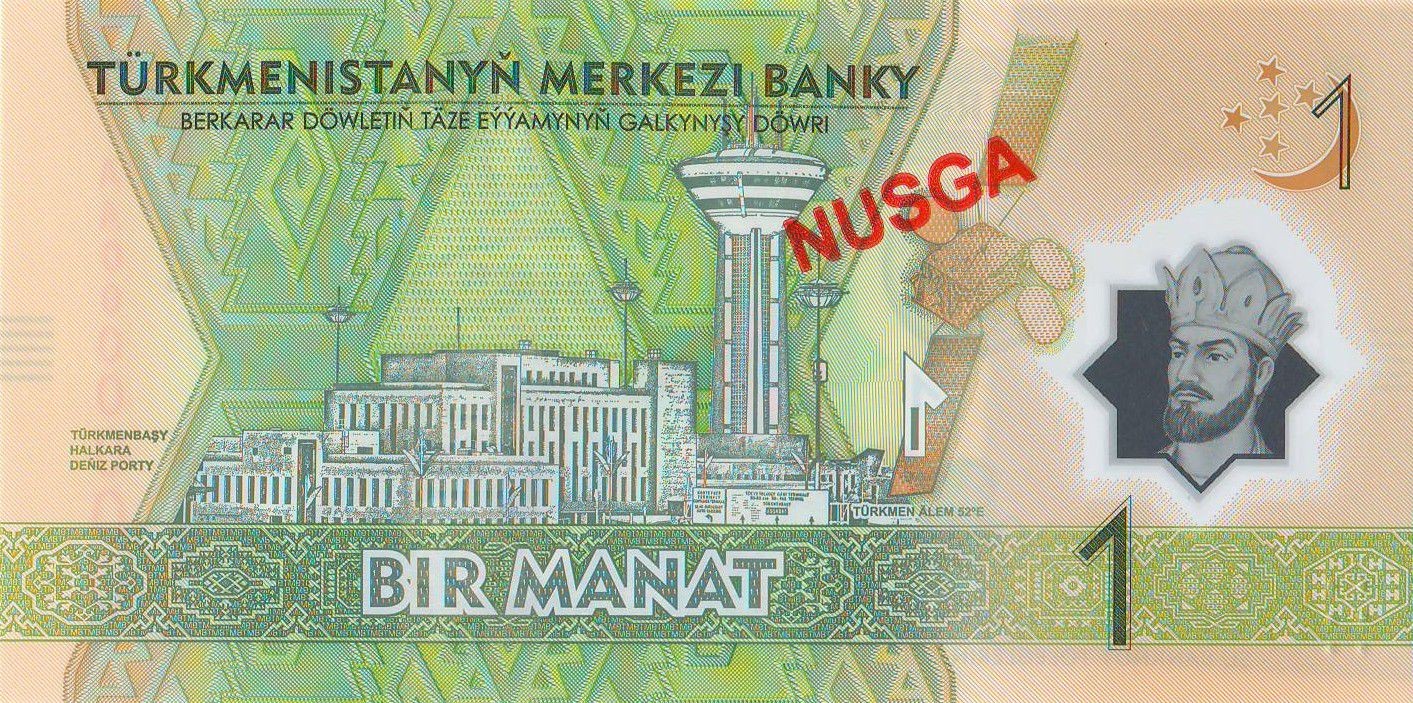 The 1-manat banknote features Toğrul Beg Türkmen (ca. 990 - 1063) on the front and the Türkmenbaşy International Seaport on the reverse. Toğrul Beg was the second ruler of the Seljuk dynasty. Tuğrul united the Turkomen warriors of the Great Eurasian Steppes into a confederacy of tribes, who traced their ancestry to a single ancestor named Seljuk, and led them in conquest of eastern Iran. He would later establish the Seljuk Sultanate after conquering Persia and retaking the Abbasid Capital of Baghdad from the Buyid Dynasty in 1055. Tuğrul relegated the Abbassid Caliphs to state figureheads and took command of the caliphate's armies in military offensives against the Byzantine Empire and the Fatimid Caliphate in an effort to expand his empire's borders and unite the Islamic world.