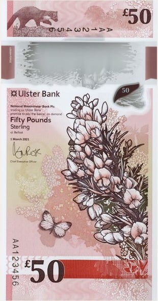 Ulster Bank will complete its current polymer series with the issuance of a £50 banknote on June 15, 2022.