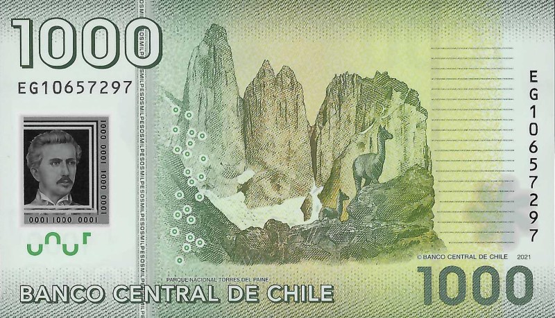Chile S2R12, 1,000 pesos, 2021, P161, B296l, UNC