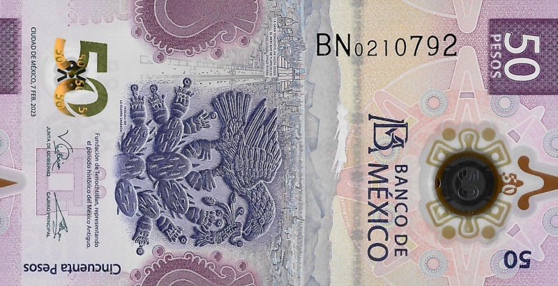 Mexico S7R16, 50 pesos, 2023, P130A, B714d, UNC
