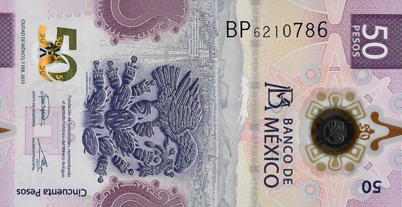 Mexico S7R17, 50 pesos, 2023, P130A, B714d, UNC