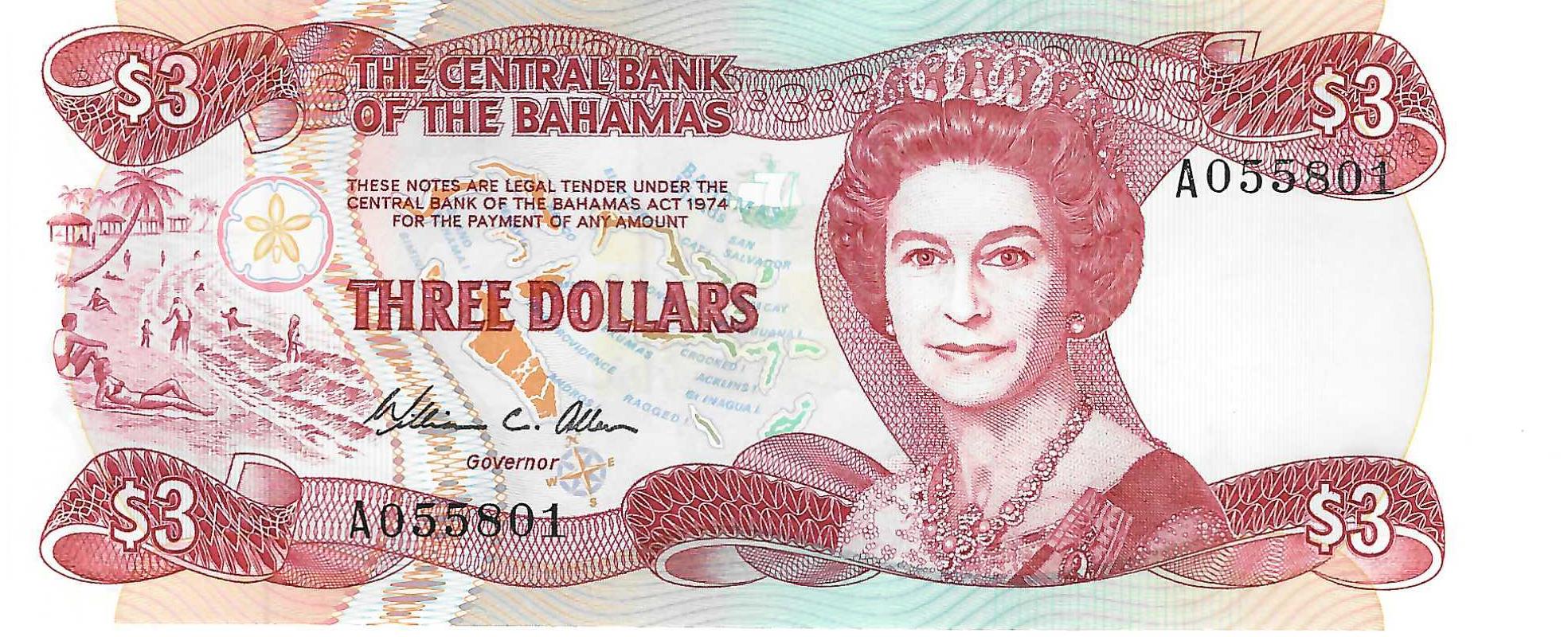 Bahamas, 3 dollars, 1974, P44, B309, UNC