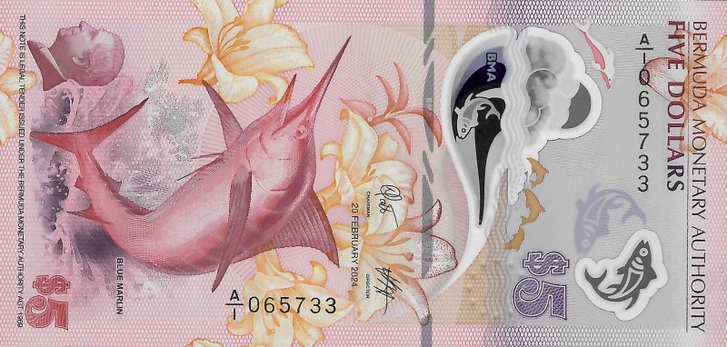 Bermuda S2R1, 5 dollars, 2024, P64a, B238, UNC