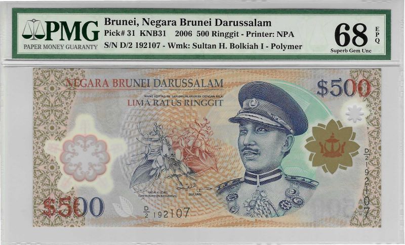 Brunei S9R1-68, 500 dollars, 2006, P31, B203a, PMG 68 EPQ