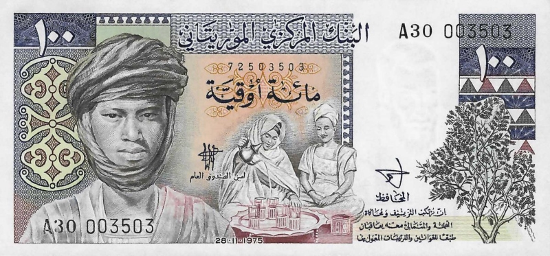 Mauritania, 100 ouguiya, 1975, P3A, B108a
