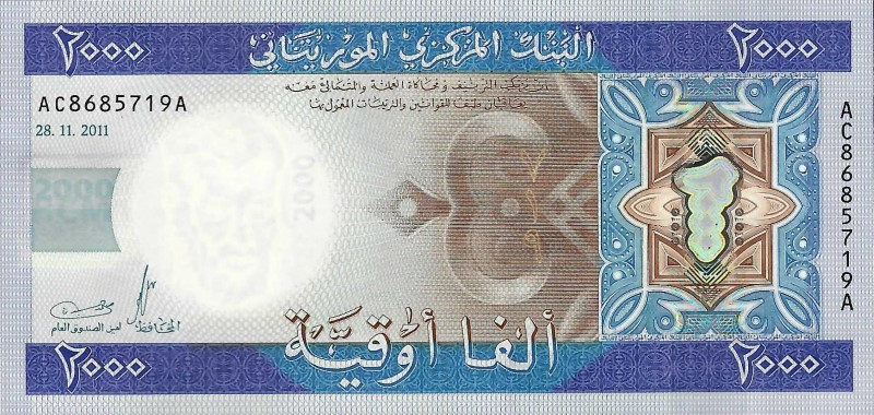 Mauritania, 2,000 ouguiya, 2011, P20, B124, UNC.