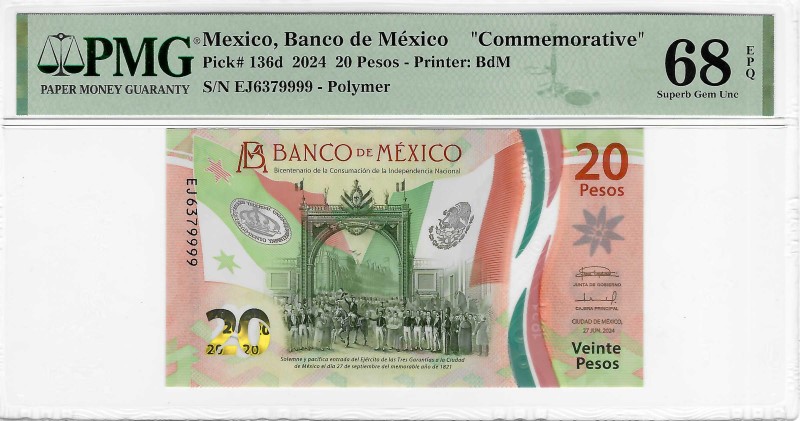 Mexico S6R56, 20 pesos, P136d, 2024