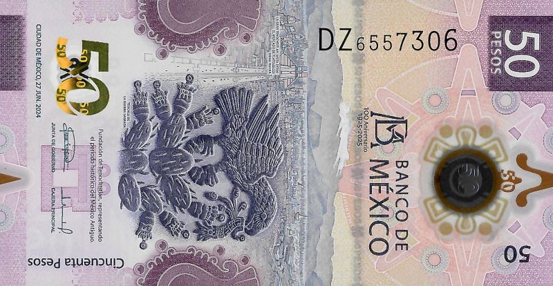 Dated 27 JUN. 2024. Signed by Espinosa-Morales. Commemorative overprint. Prefix DU-EF.