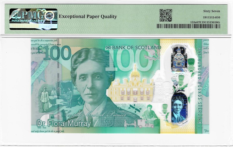 Scotland (UK)–BoS S6P1, 100 pounds, 2021, P135s, PMG 67 EPQ