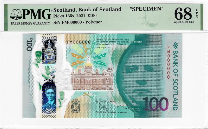 Scotland (UK)–BoS S6P1, 100 pounds, 2021, P135s, PMG 68 EPQ