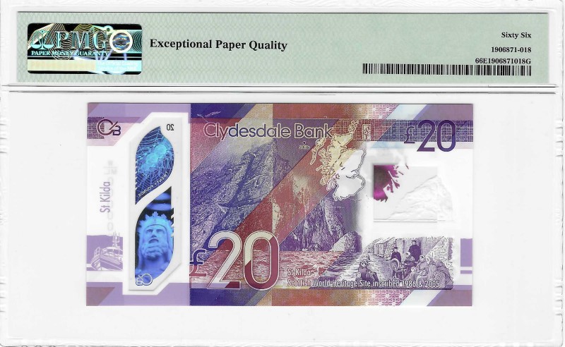 Scotland (UK)–Clydesdale Bank, S3P1, 20 pounds, 2020, P229Ras B1181, PMG66EPQ