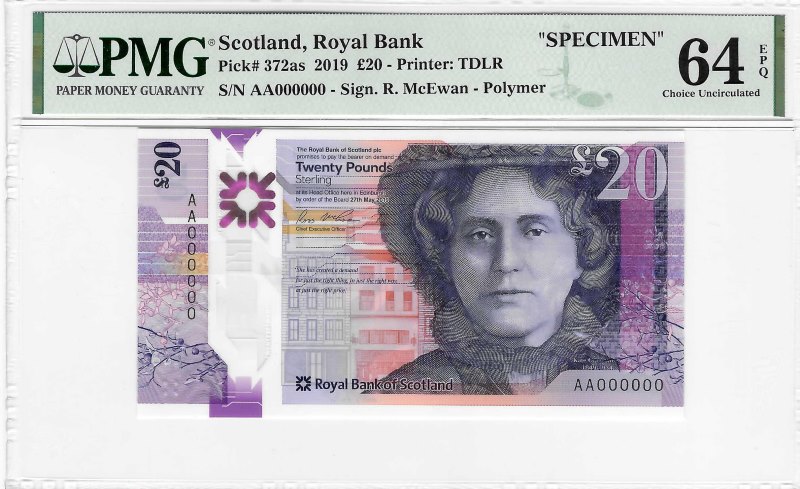 Scotland (UK)–RBS S3S1, 20 pounds, 2019, P372as, PMG 64 EPQ