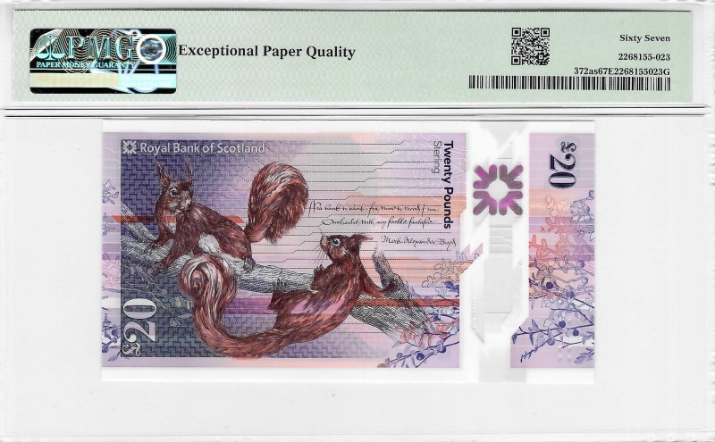 Scotland (UK)–RBS S3S1, 20 pounds, 2019, P372as, PMG 67 EPQ