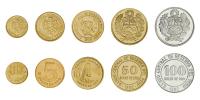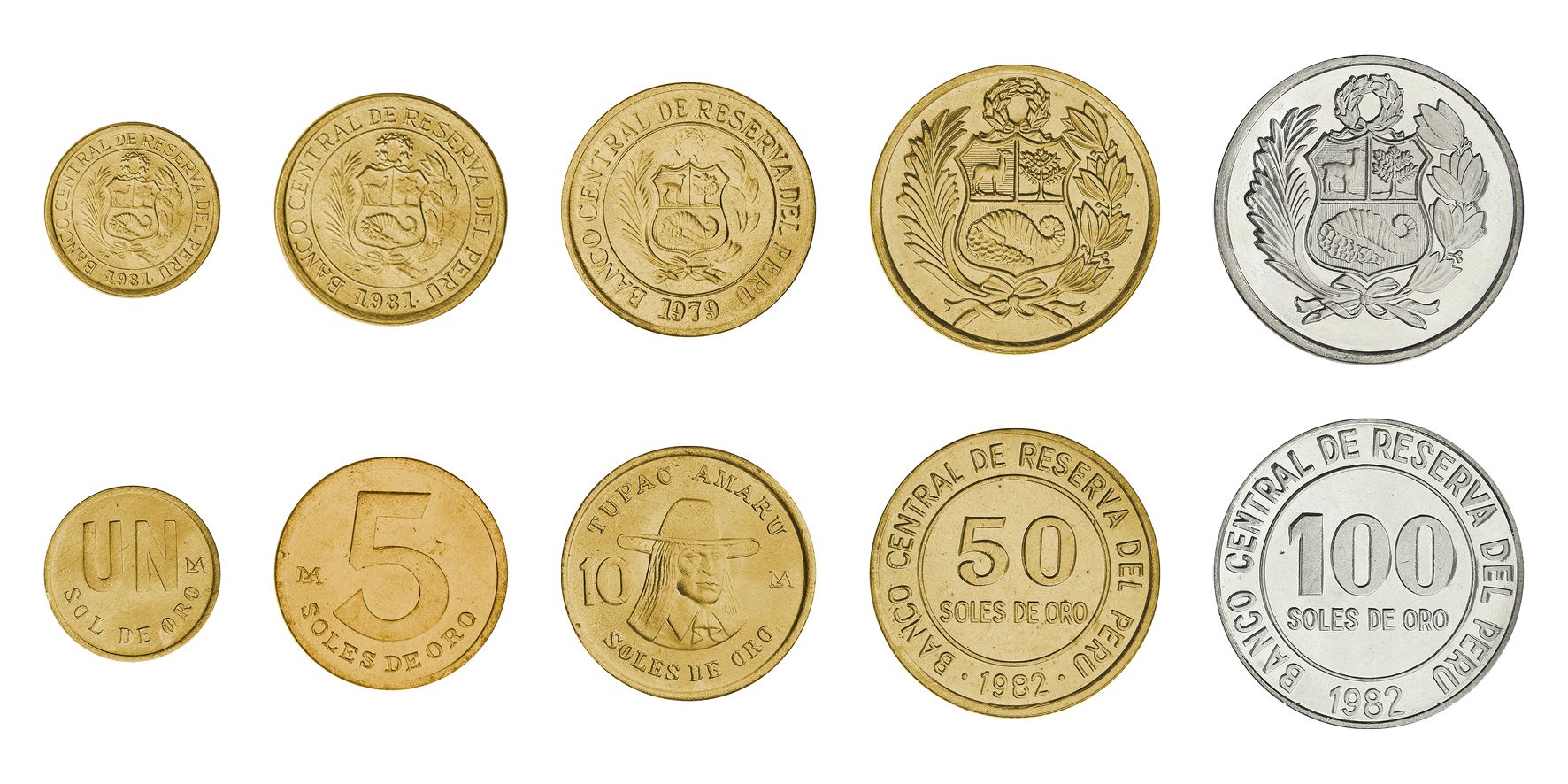 Peru coin set, from 1978-1983,  including denominations: 1, 5, 10, 50, 100 Soles, KM 266, 271, 272, 273, 283