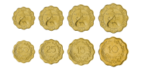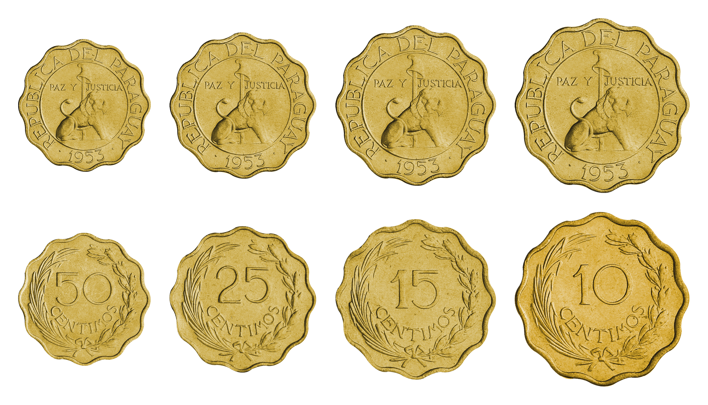 Paraguay coin set, from 1953, including denominations: 10, 15, 25, 50 Centimos, KM 25, 26, 27, 28