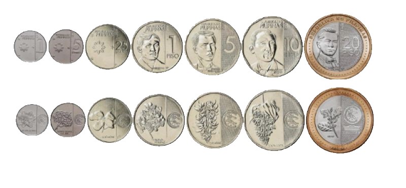 Philippines coin set, from 2017-2020, including denominations: 1, 5, 25,Sentimos, 1, 5, 10, 20 Piso, KM 297, 298, 299, 300, 302, 303, 313