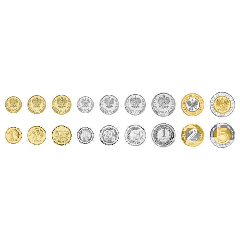 Poland coin set, from 1949-1990, including denominations: 5, 10, 20, 50 Groszy, 1, 2, 5, 10, 20, 50, 100 Zlotych, KM A46, AA47, A47, 48, 49, 80, 81, 152, 153, 216, 214