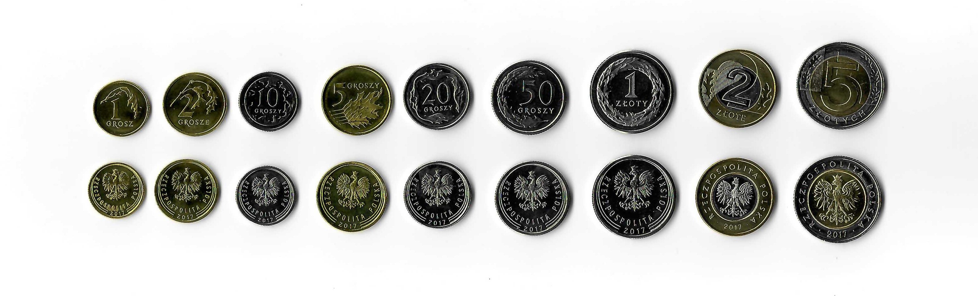Poland coin set, from 1994-2019, including denominations: 1, 2, 5, 10, 20, 50 Groszy, 1, 2, 5 Zlotych, KM New, New, New, New, New, New, New, 283, 284