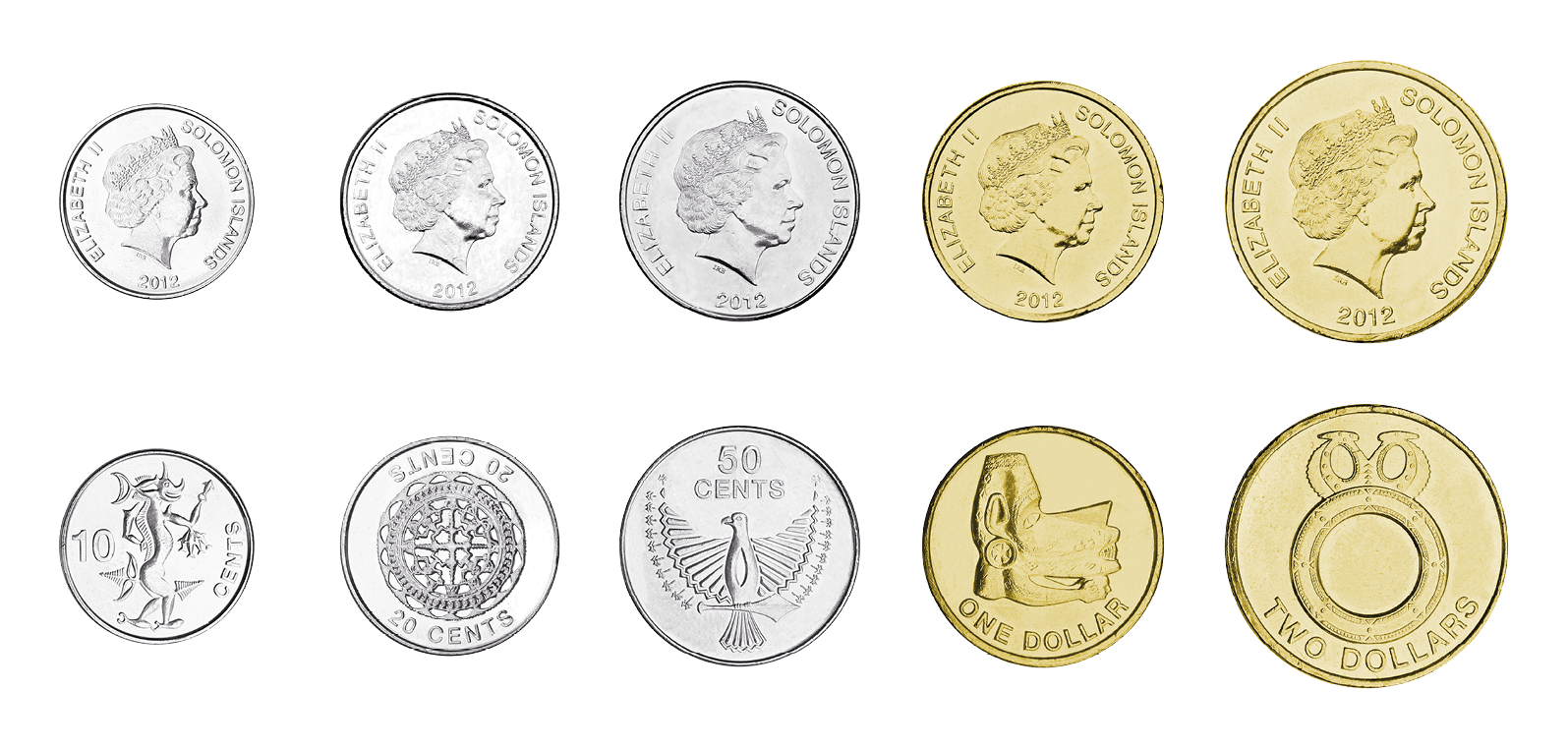 Solomon Islands coin set, from 2012, including denominations: 10, 20, 50 Cents, 1, 2 Dollar, KM 235, 236, 237, 238, 239