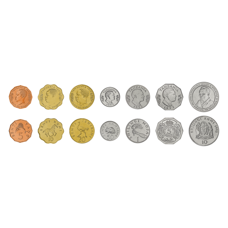 Tanzania coin set, from 1966-1992, including denominations: 5, 10, 20, 50 Senti, 1 Shiling, KM 1, 11, 2, 26, 22