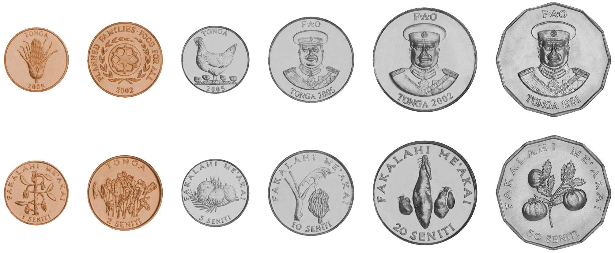 Tonga coin set, from 1981-2011, including denominations: 1, 2, 5, 10, 20, 50 Seniti, KM 66, 67, 68, 69, 70, 71